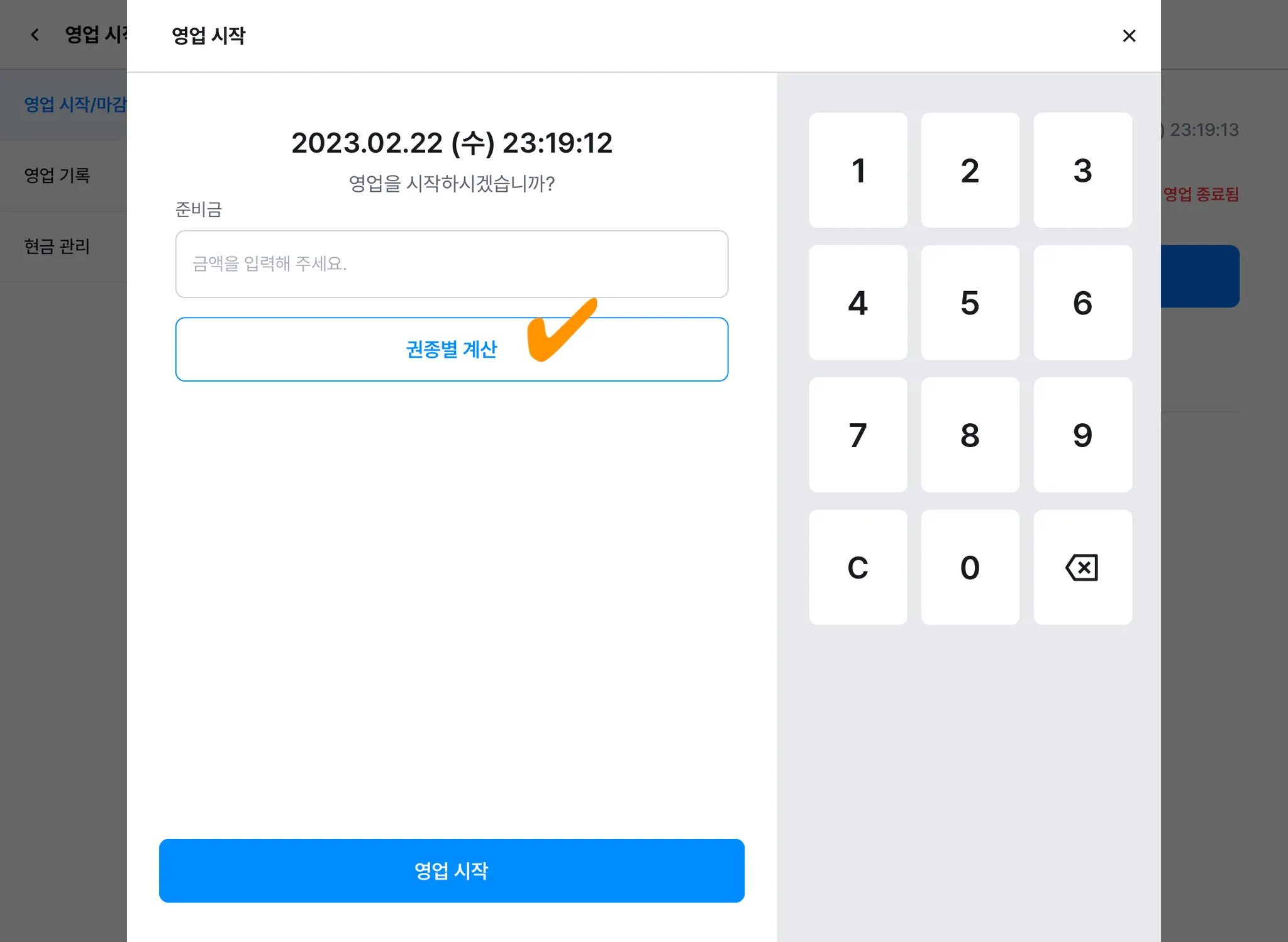 3) 영업 시작 시에 [권종별 계산] 버튼을 눌러주세요.