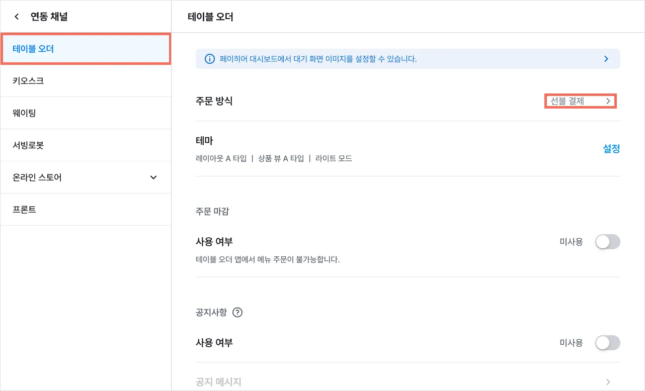테이블 오더 설정과 관련된 전반적인 내용은 하단 링크를 통해 확인할 수 있어요.