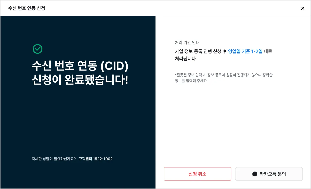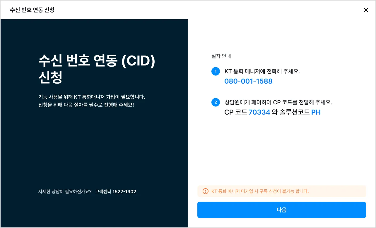 2) 위 내용을 확인한 후 KT 지능망 고객센터로 연락해 주세요.
