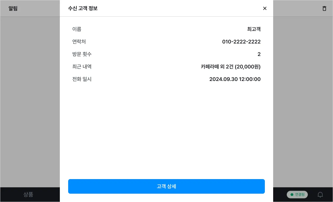 [고객 상세]를 누르면 고객 정보로 이동합니다.