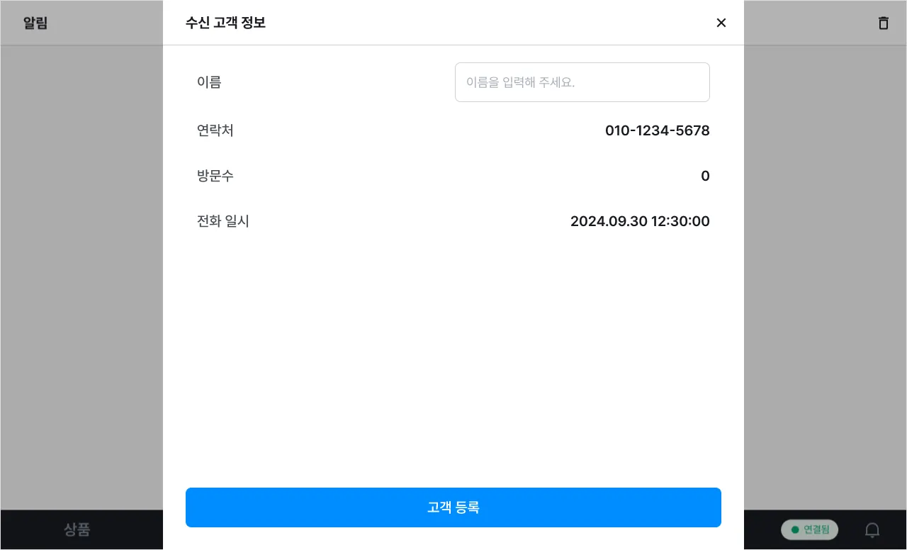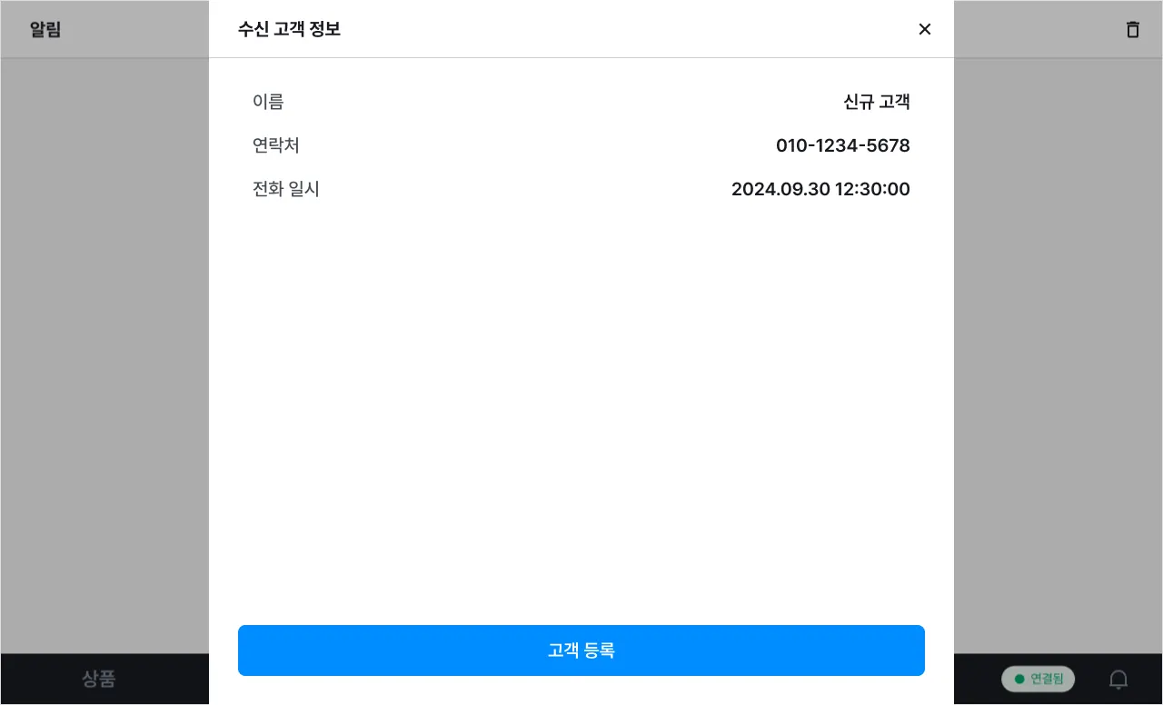 4) 신규 고객 : 알림 내역을 선택하면 [고객 등록]을 확인할 수 있어요.