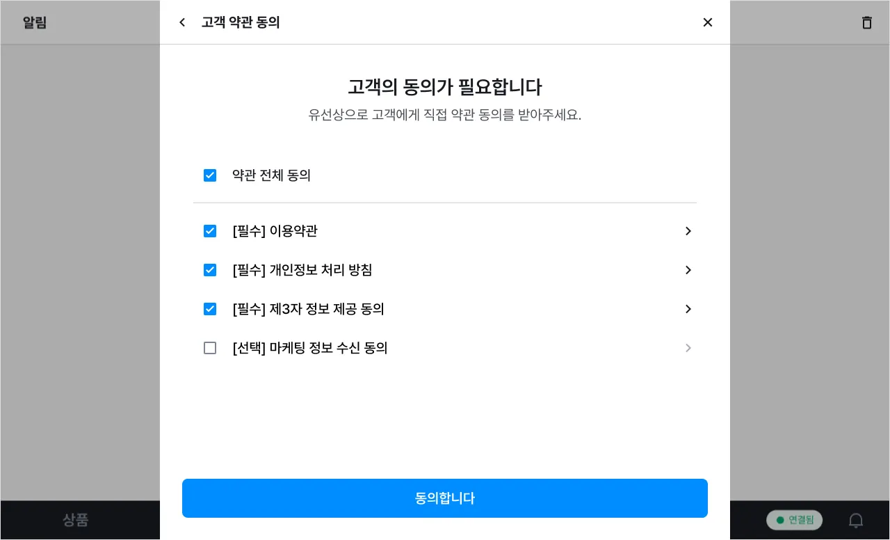 5) 고객 약관 동의 후 신규 고객 등록이 가능해요.