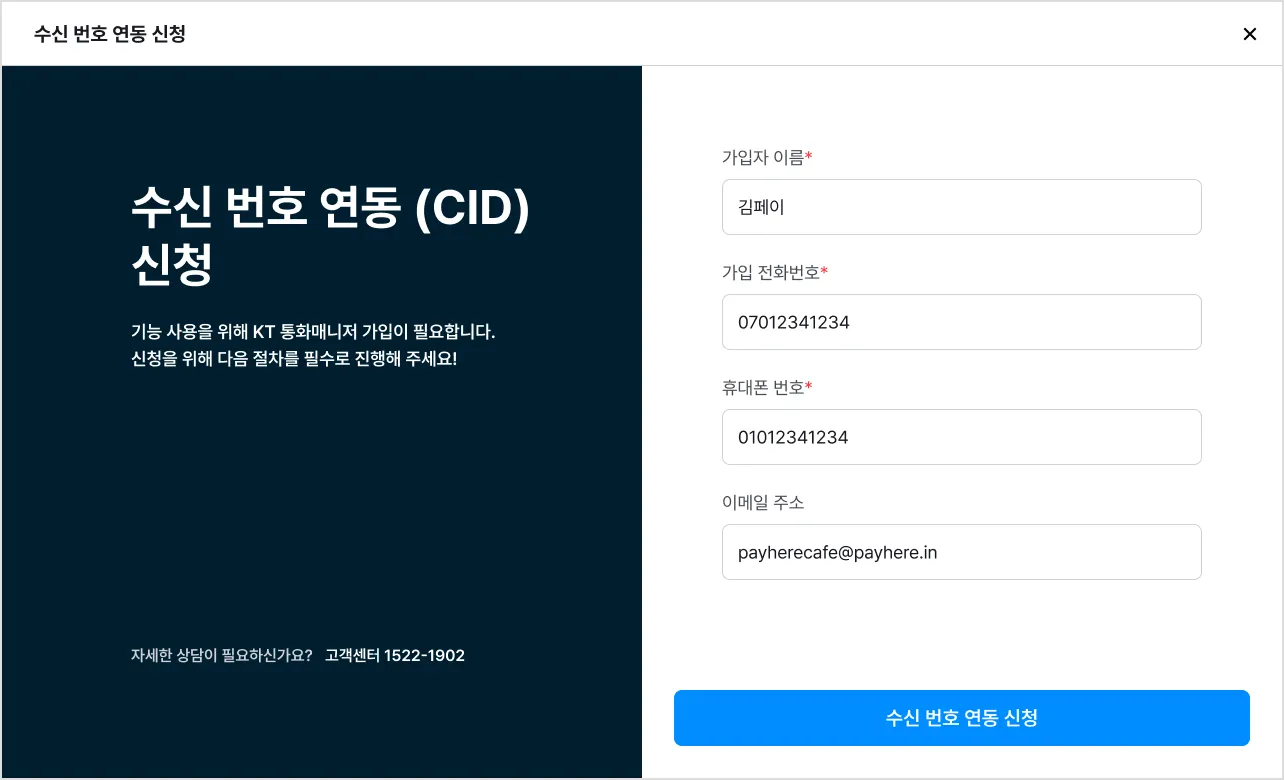 휴대폰 번호 | KT 통화 매니저 가입 시 기재한 휴대폰 번호 |