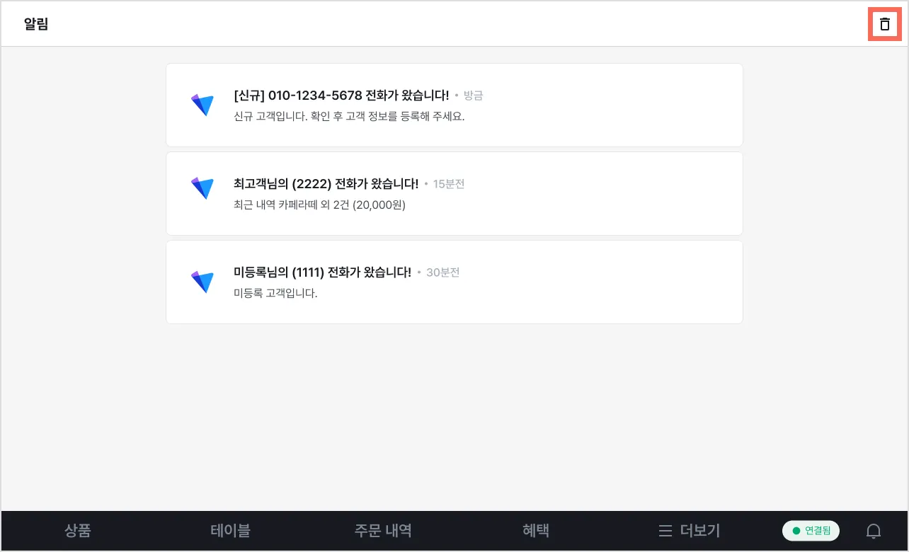1) 매장에 전화가 오면 셀러에서 알림을 확인할 수 있어요.