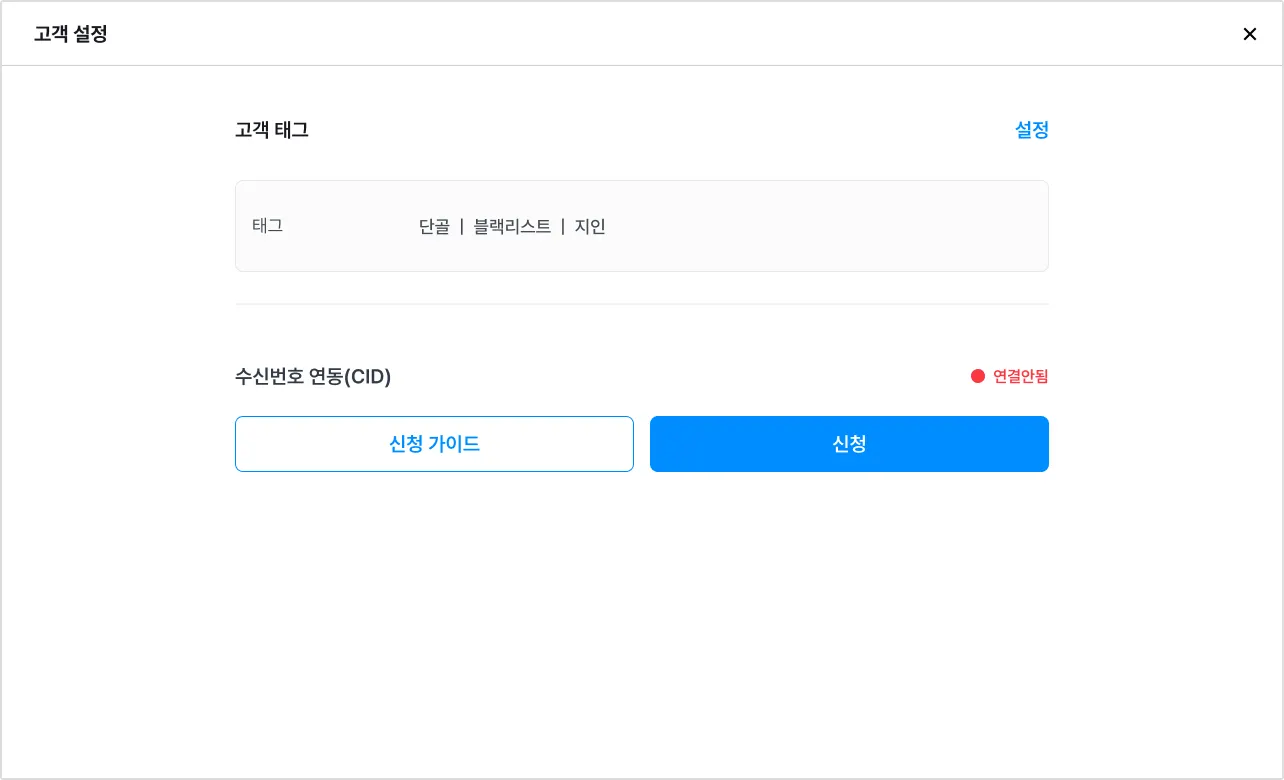 5) 정보를 입력한 후 [수신 번호 연동 신청]을 눌러주세요.