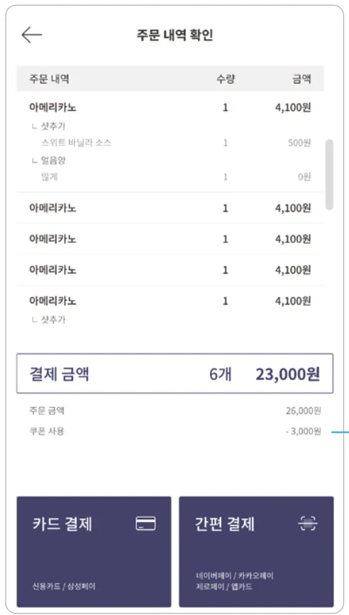 2) 결제 화면에서 쿠폰 사용 금액을 확인할 수 있습니다.