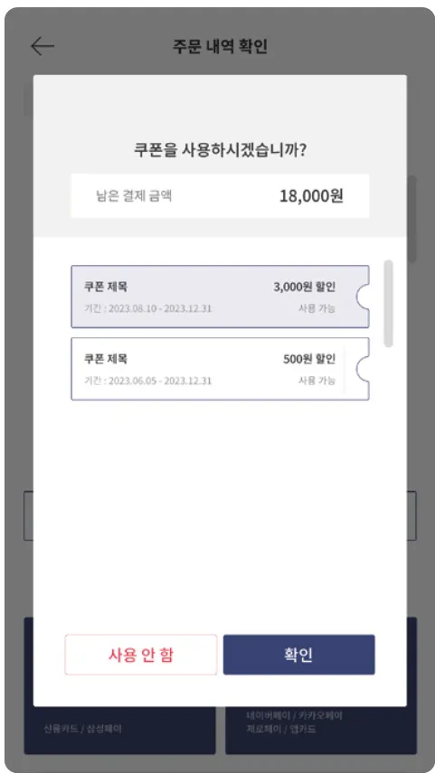 쿠폰 할인 금액이 결제 금액보다 크면 쿠폰을 사용할 수 없습니다.