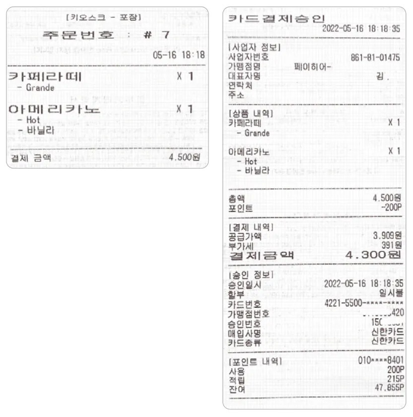 1) 페이히어 셀러에서 고객에게 쿠폰을 발급했을 때, 쿠폰을 받은 고객은 키오스크에서도 쿠폰을 사용할 수 있습니다.