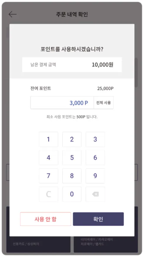 3) 보유한 포인트가 최소 사용 포인트 이상이면 포인트 사용이 가능합니다.