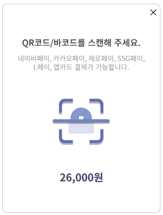 2) QR 코드 인식 화면이 나오면 바코드 스캐너에 QR 코드를 인식합니다.