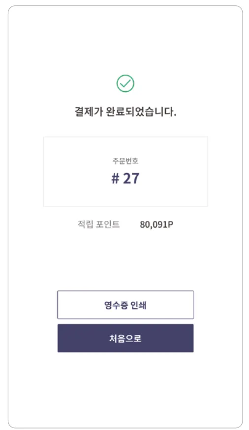 1) 결제가 완료되고 주문 번호를 확인합니다. [영수증 인쇄] 버튼을 누르면 영수증이 출력됩니다.