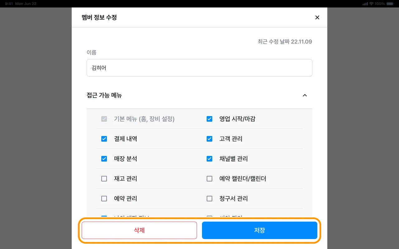추가된 직원의 번호로 [매출 리포트] 알림톡이 전송되지 않으니 참고해 주세요.