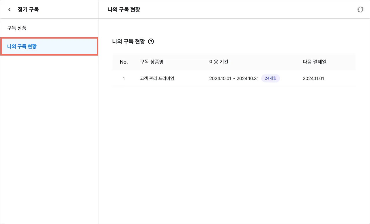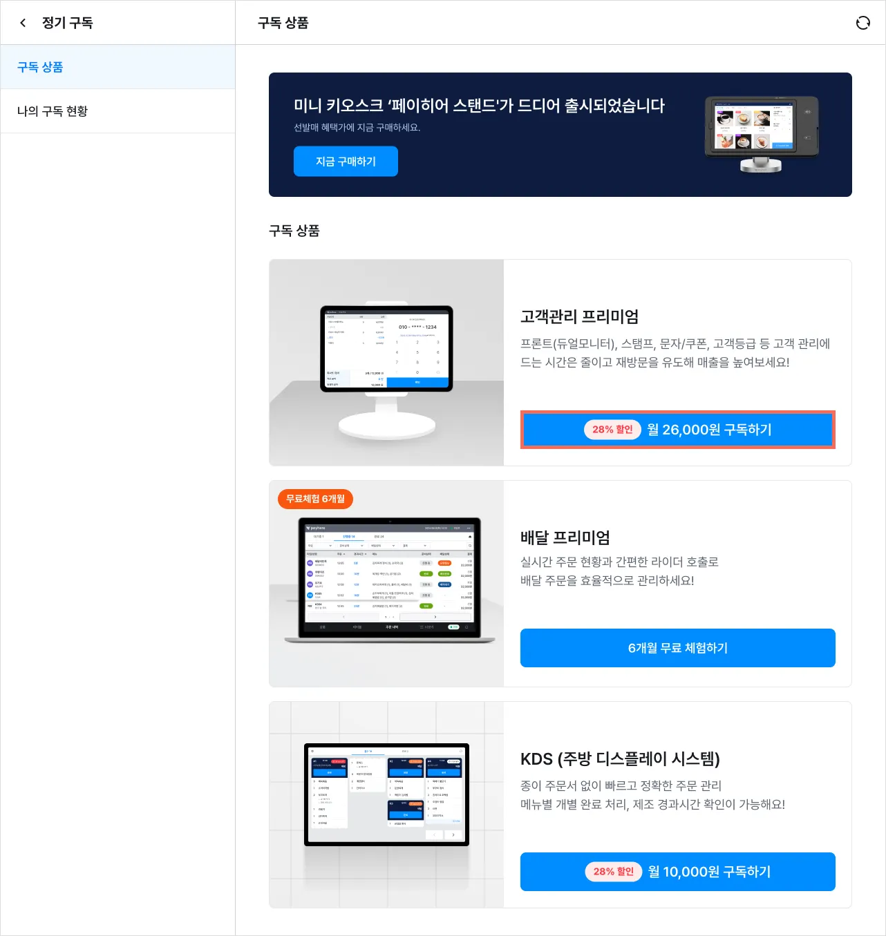 2) [구독 상품]에서 고객 관리 프리미엄 [구독하기]를 눌러주세요.