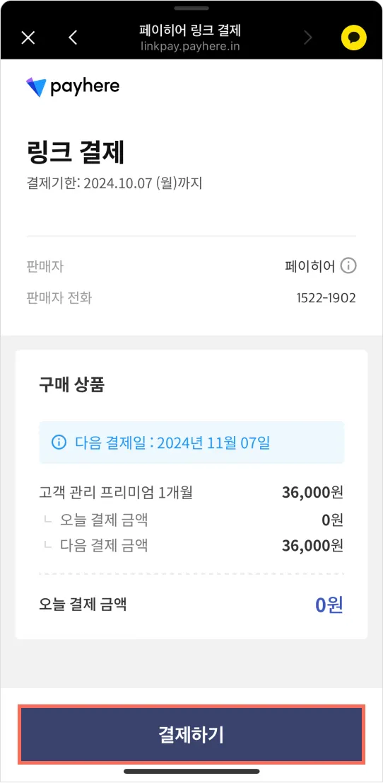 따라서 첫 구독인 경우 결제 금액은 0원으로 나타납니다.
