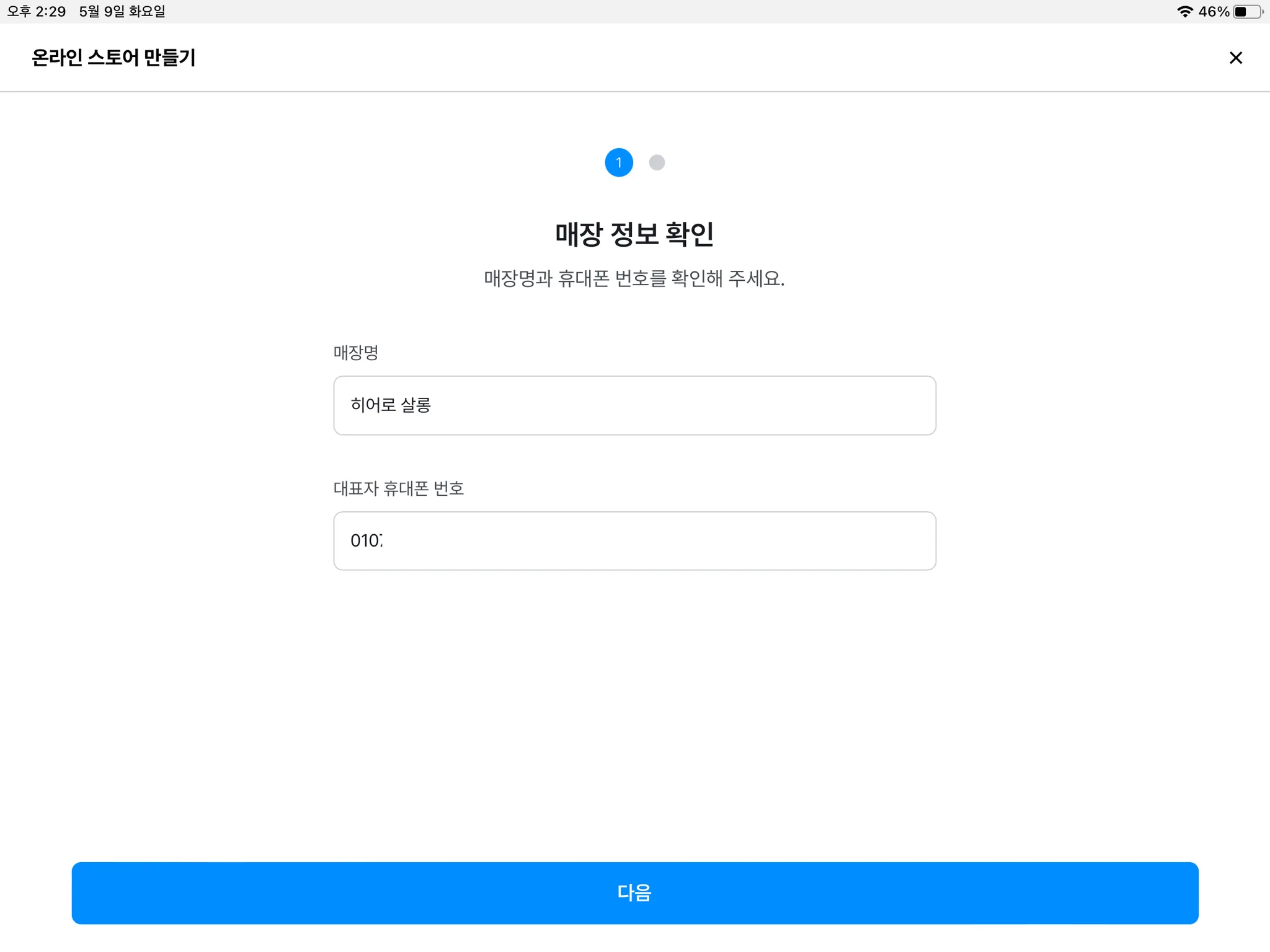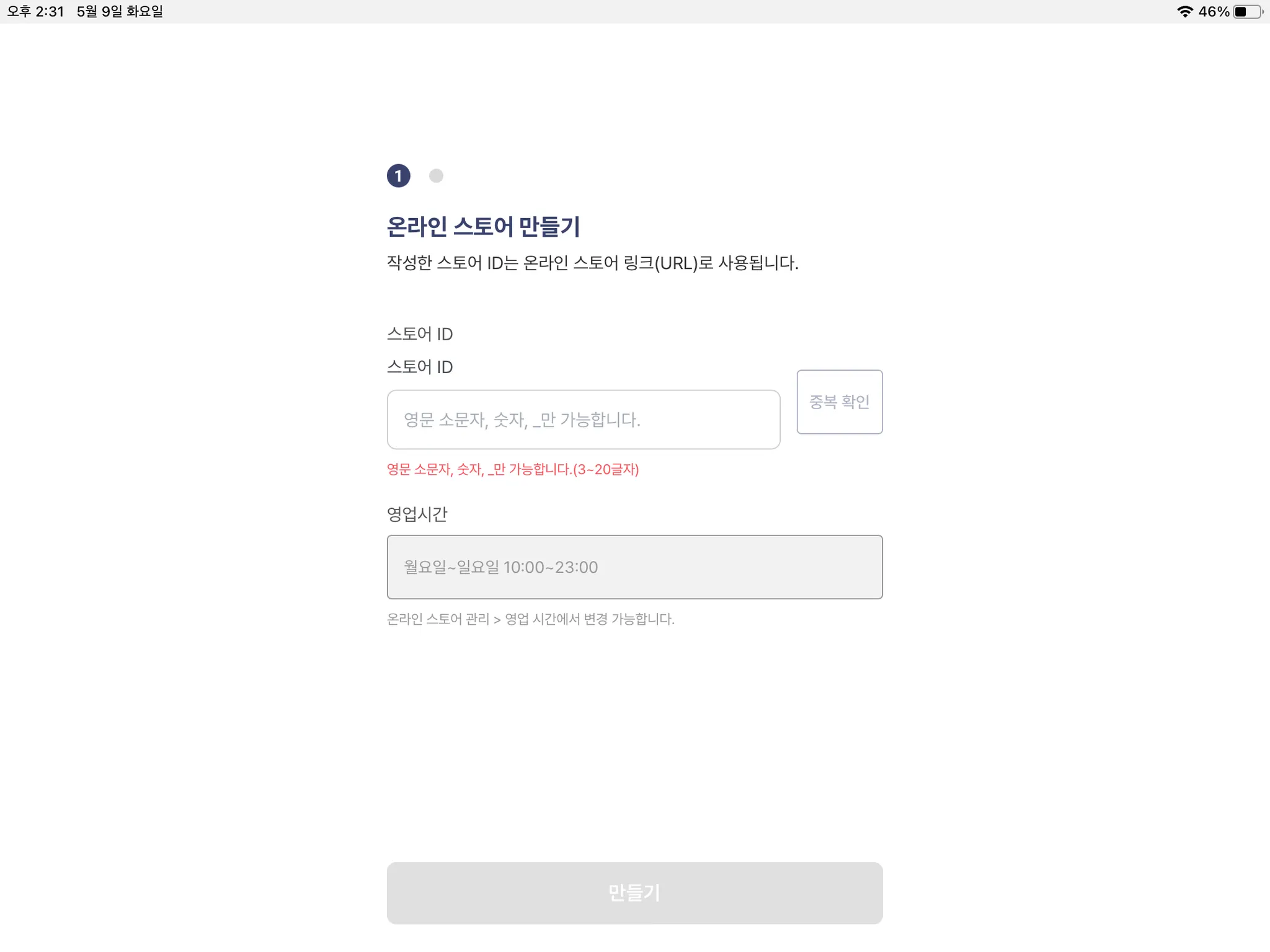 3) [온라인 스토어 만들기] 버튼을 누르면 매장 정보를 확인한 뒤, 스토어 ID를 등록할 수 있습니다.
