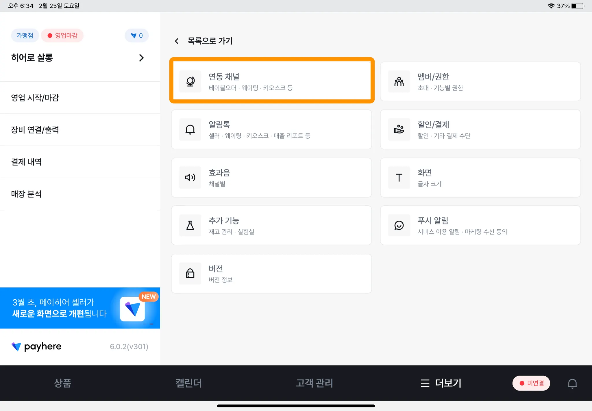 카페/음식점 POS 유형으로 PG 가입이 완료된 ‘온라인 스토어’를 운영 중인 매장에서