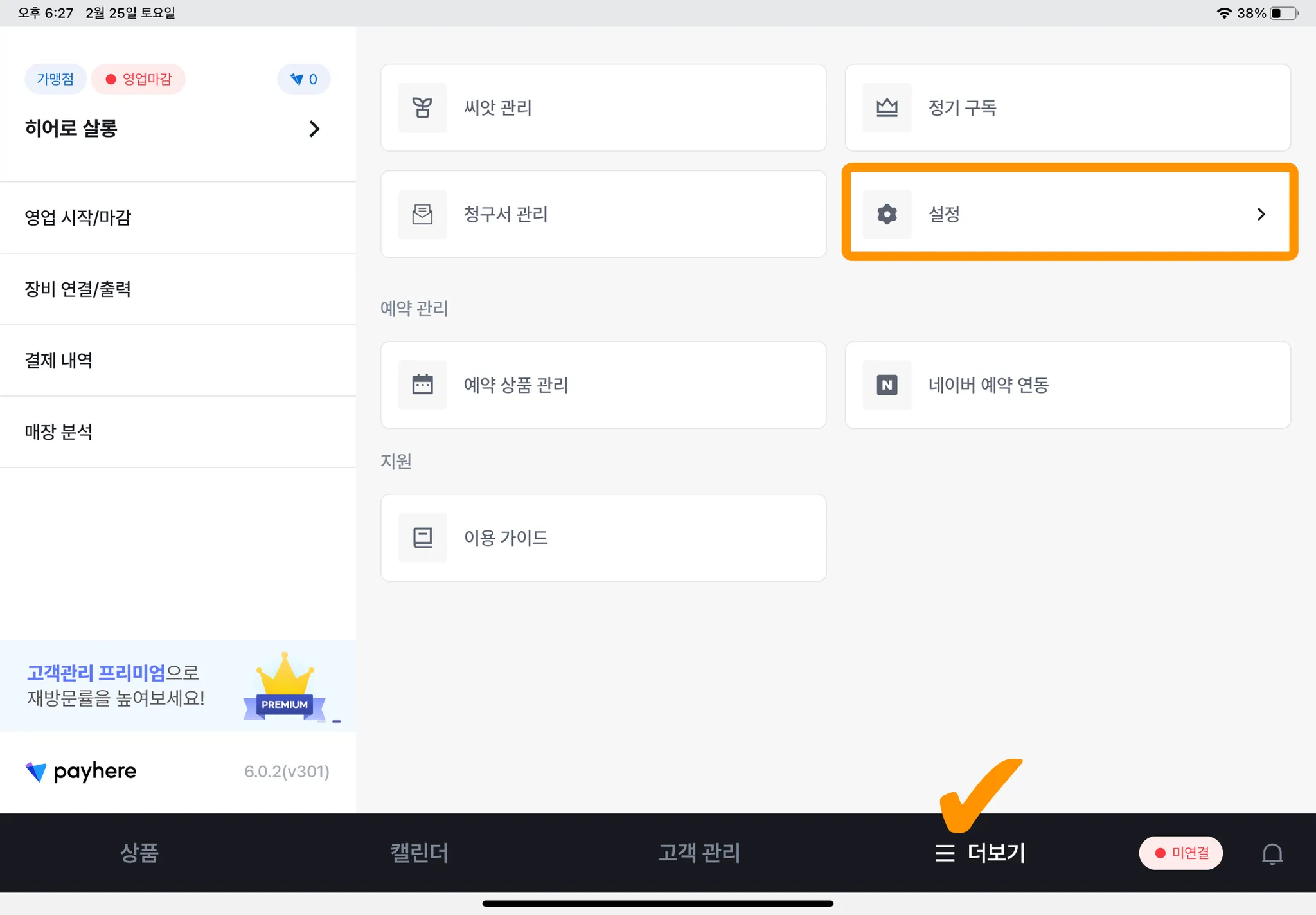 1) [☰ 더보기] → [설정]을 눌러주세요.