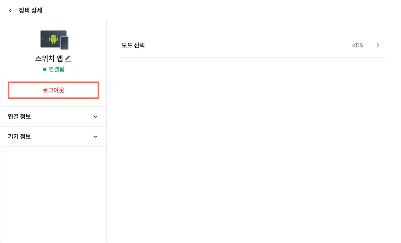 3) KDS 모드로 스위치 앱이 연동된 것을 확인할 수 있어요.