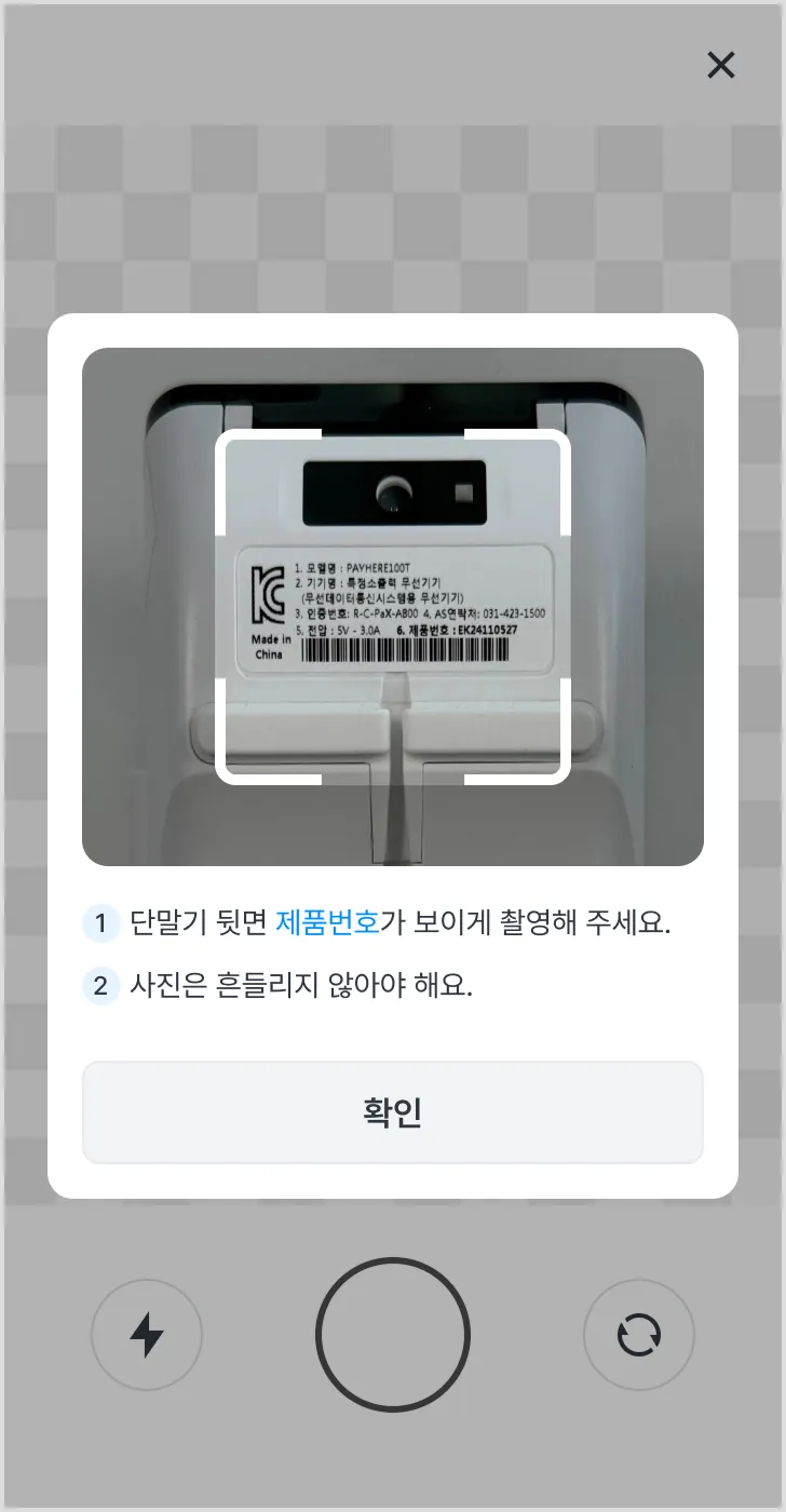 2) 페이히어 앱에서 제품 번호를 촬영하여 등록해 주세요.