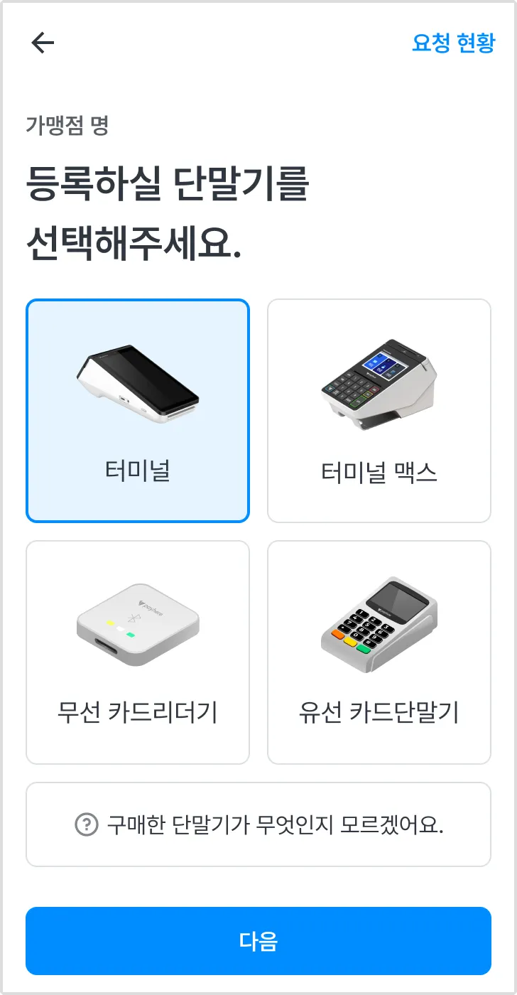 9개의 카드사 가맹이 모두 완료돼야 단말기 등록이 가능해요.