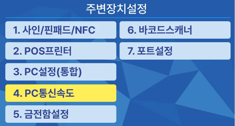단말기 키패드를 이용하여 PC 통신 속도 설정을 완료해 주세요.