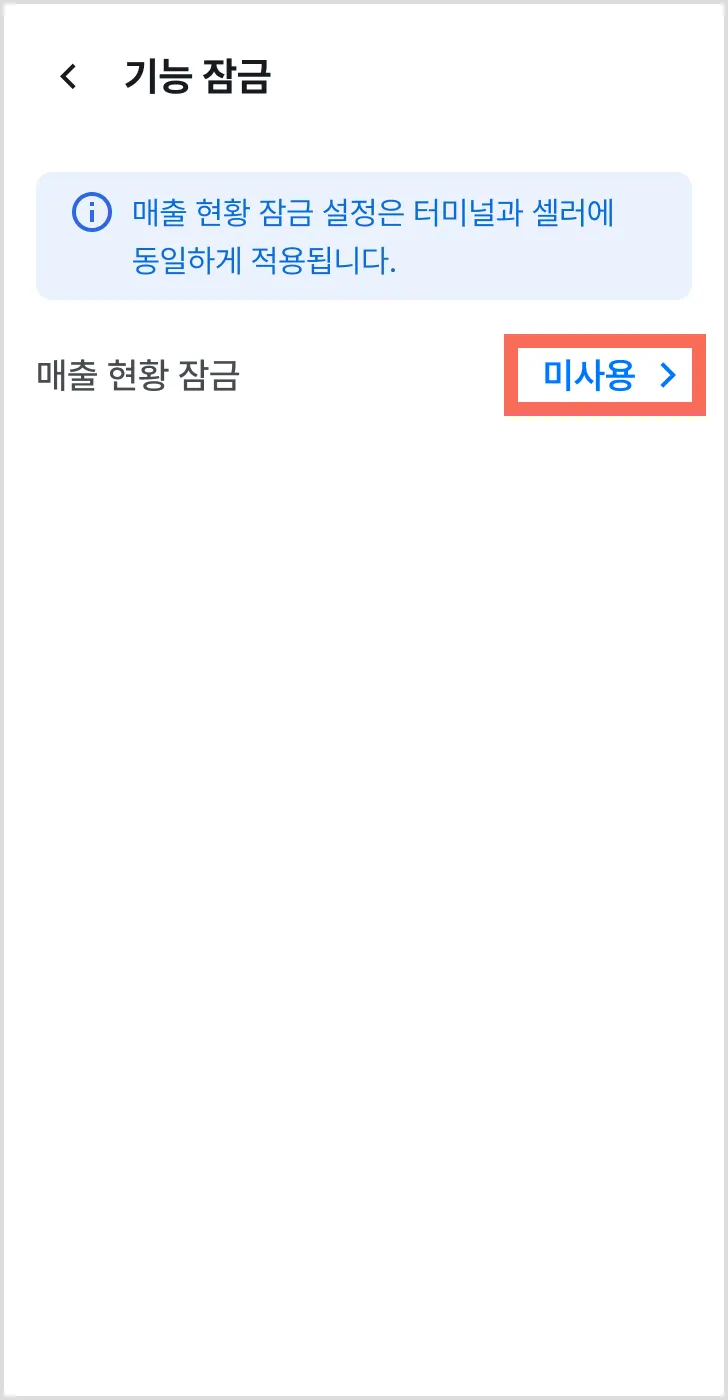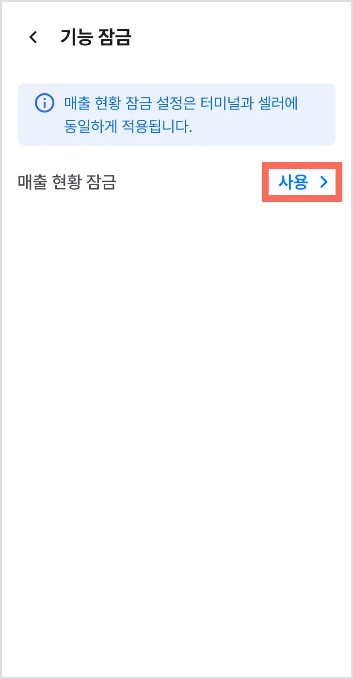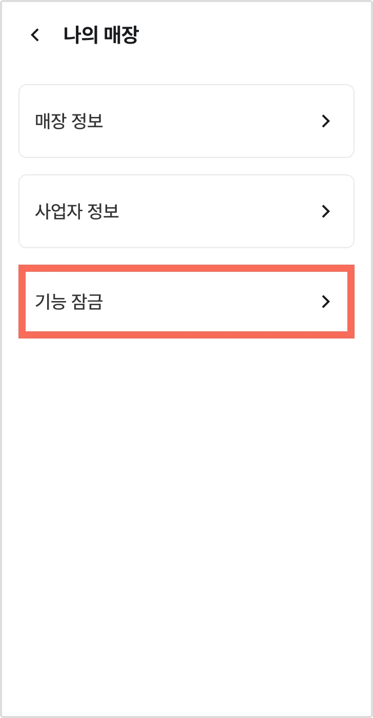 1) [매장명 >] → [기능 잠금 >]을 눌러주세요.