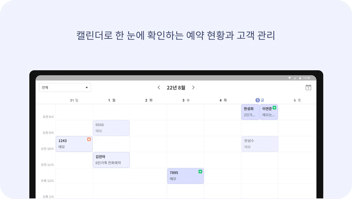 PC 버전은 카페/음식점 · 예약 · 청구서 중에서 선택이 가능합니다.