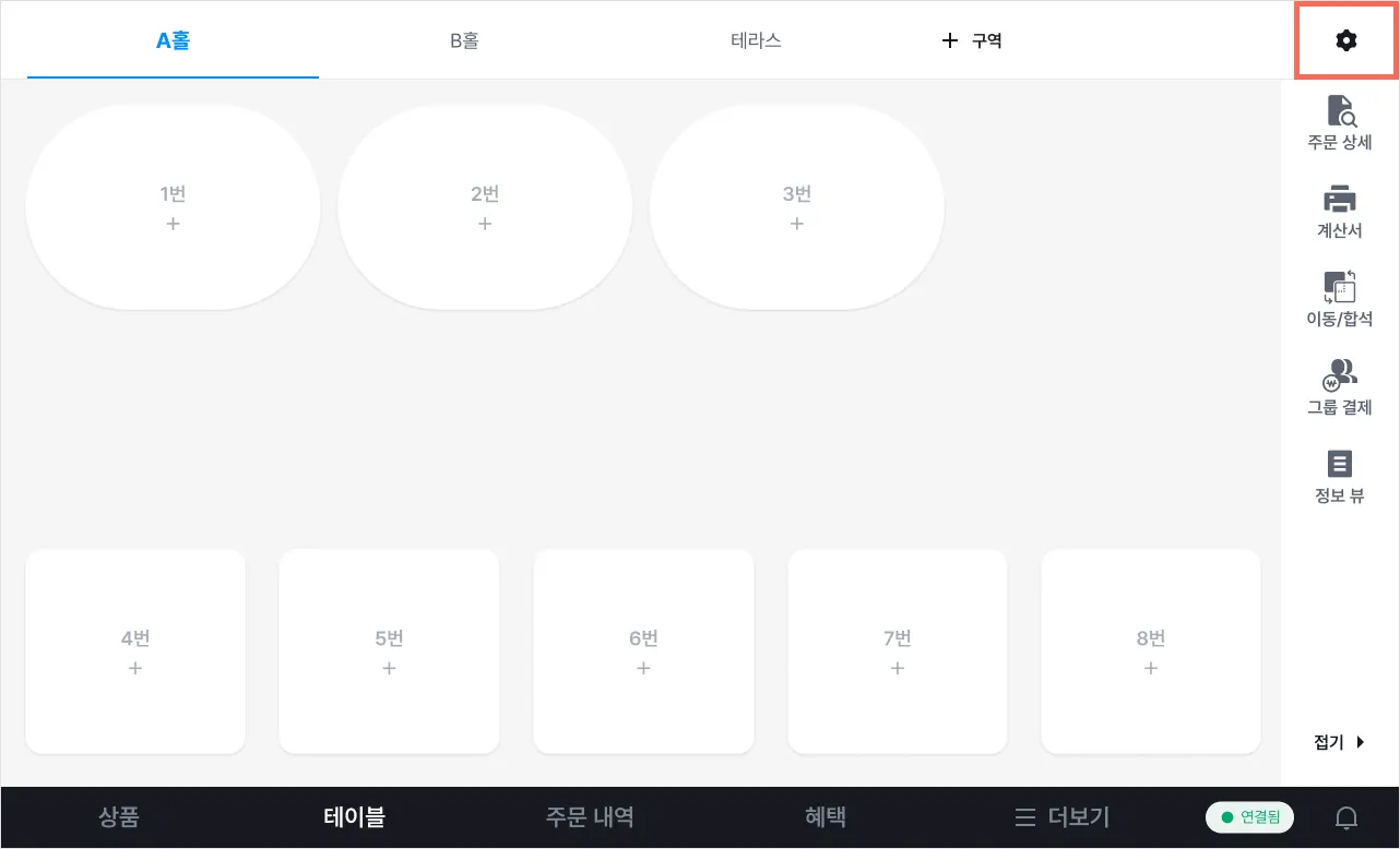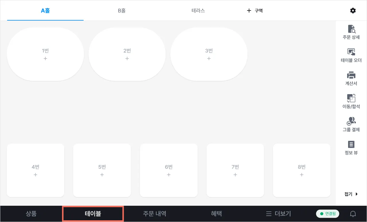 ● 연동 안됨: 테이블 오더 연결 상태를 확인해 주세요.