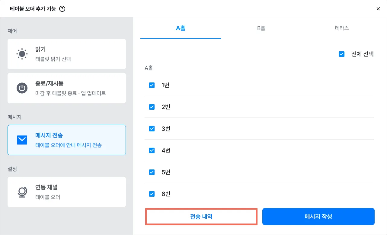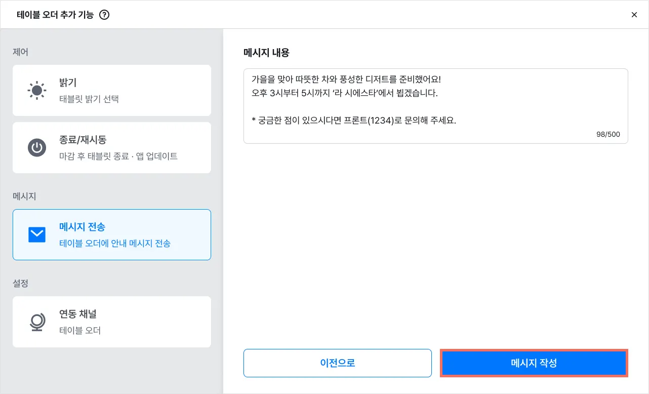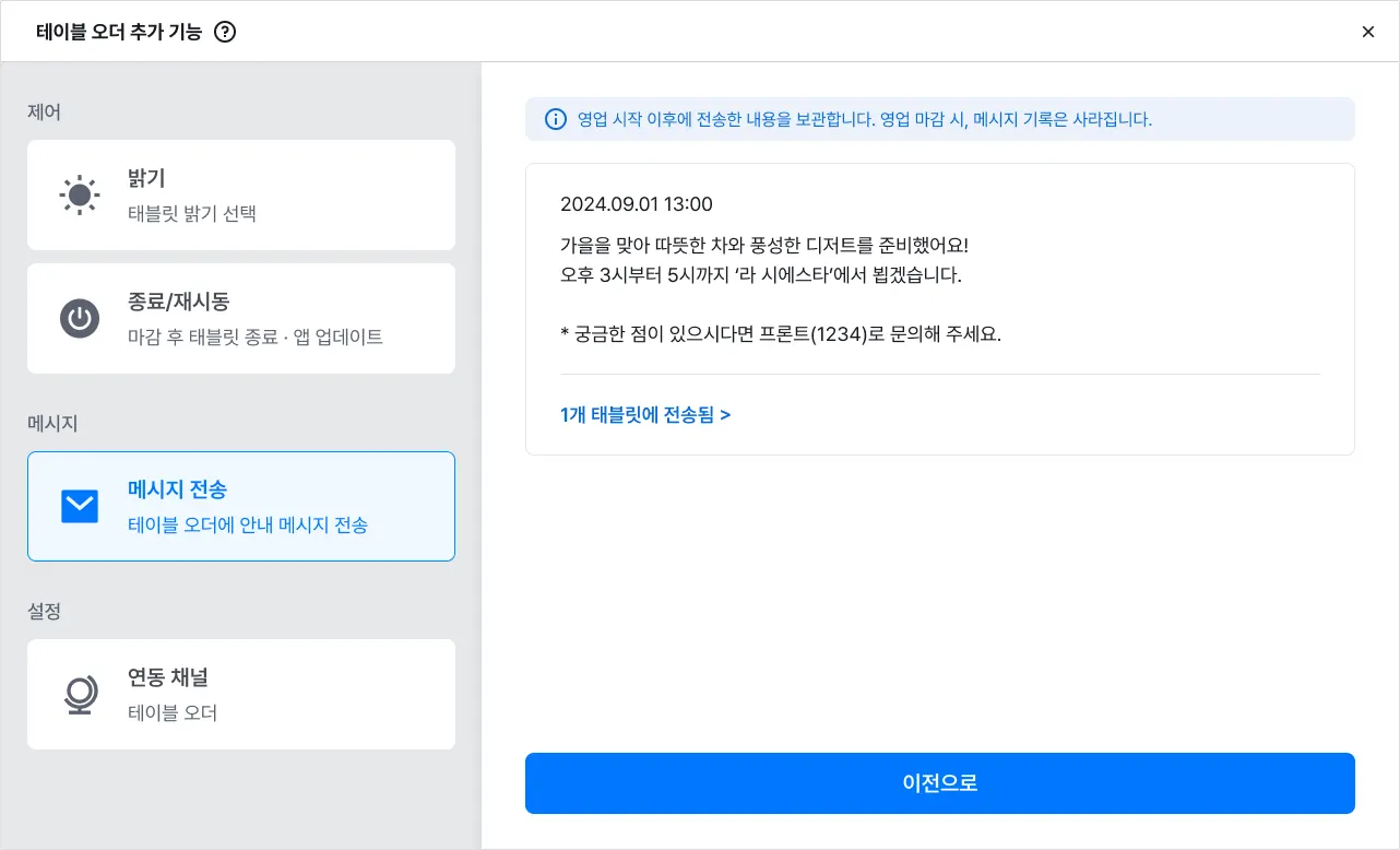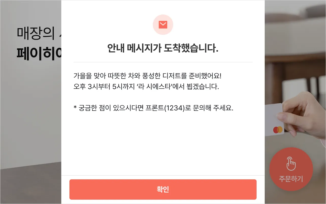 6) 테이블 오더에서 메시지를 확인할 수 있어요.
