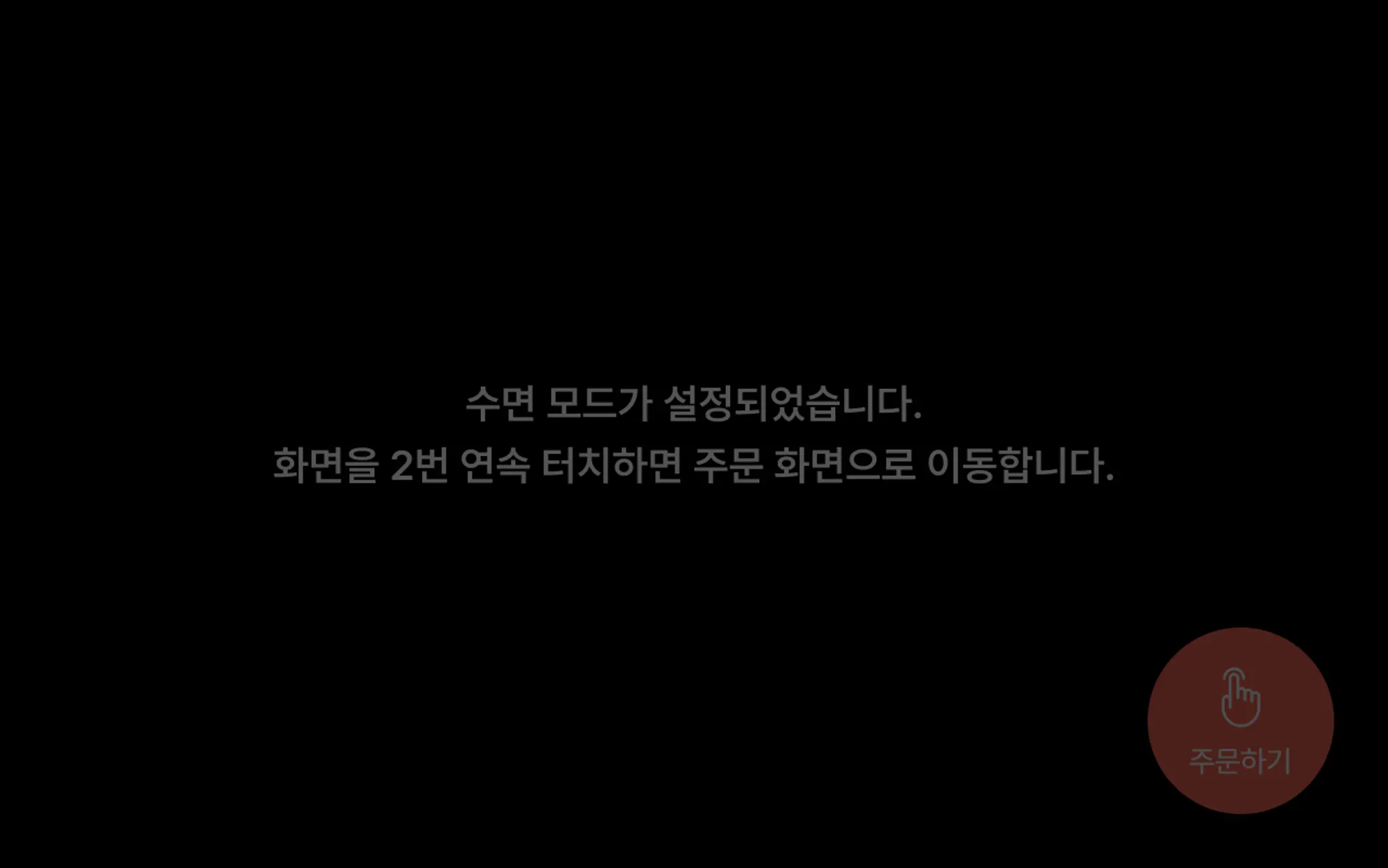 수면 모드에서 화면을 2번 연속 터치하면 주문 화면이 나타나요.