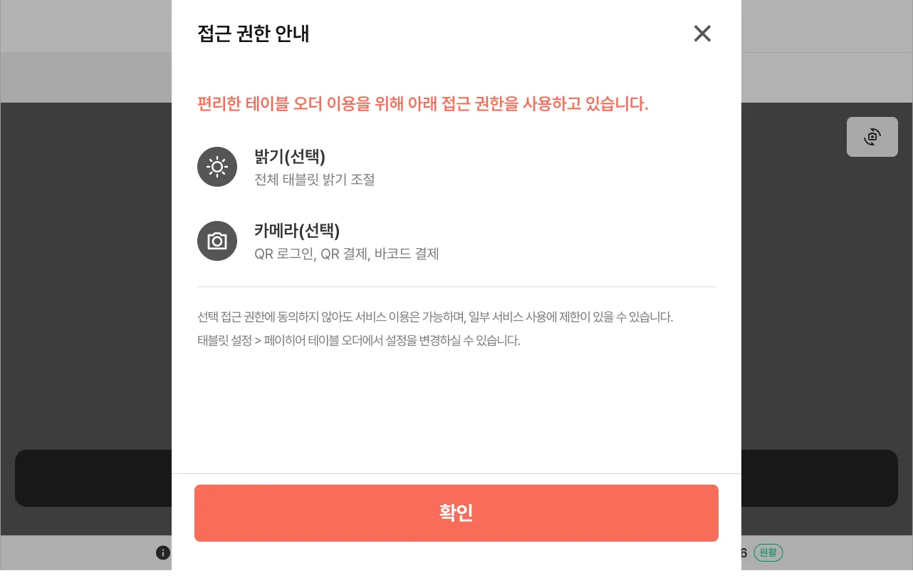 테이블 오더 앱 버전이 1.0.9(v37) 이상에서 확인할 수 있어요.