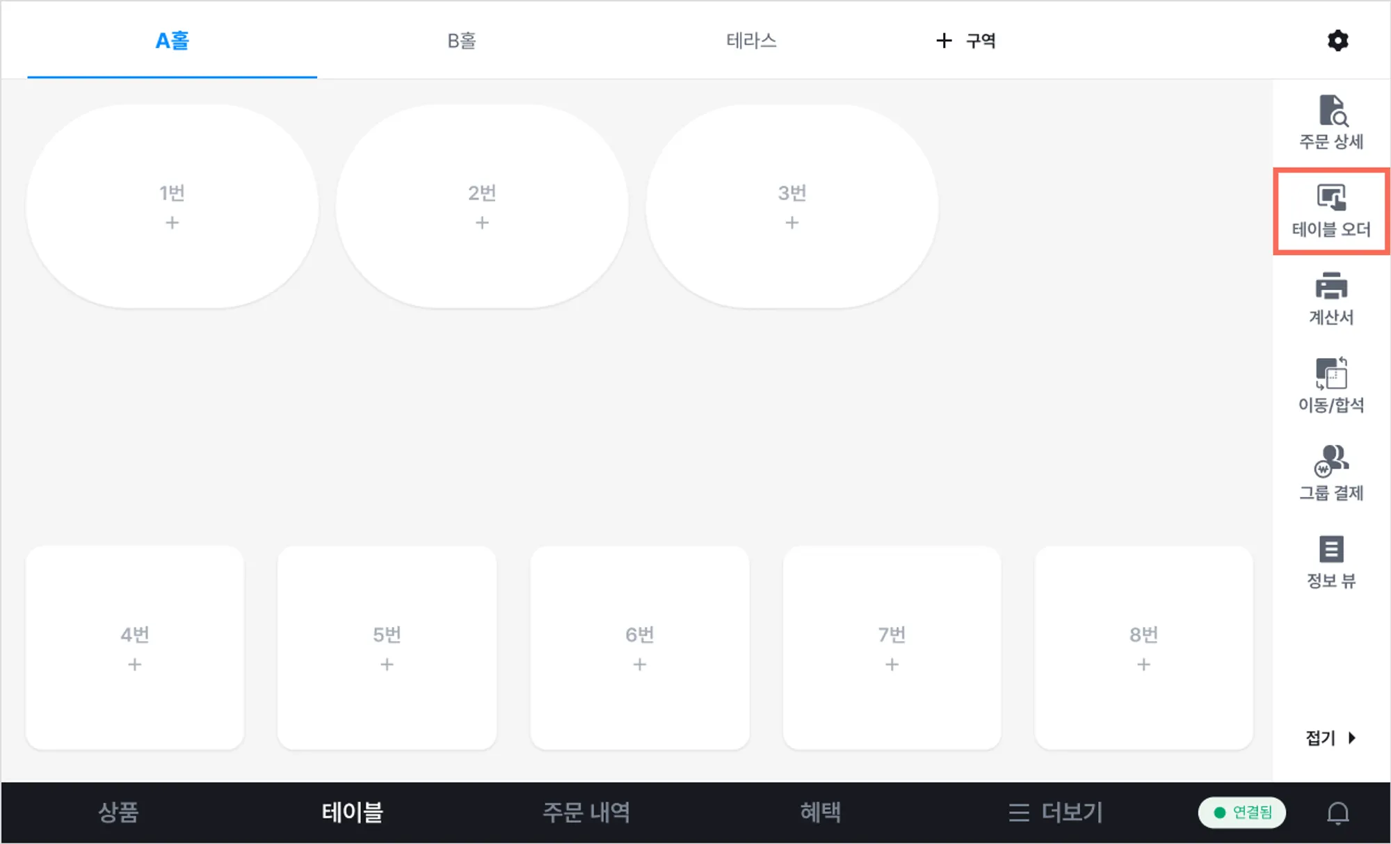 ④ [테이블 오더]가 추가된 것을 확인할 수 있어요.