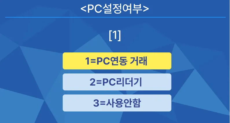 단말기 키패드를 이용하여 PC설정(통합) 설정을 완료해 주세요.