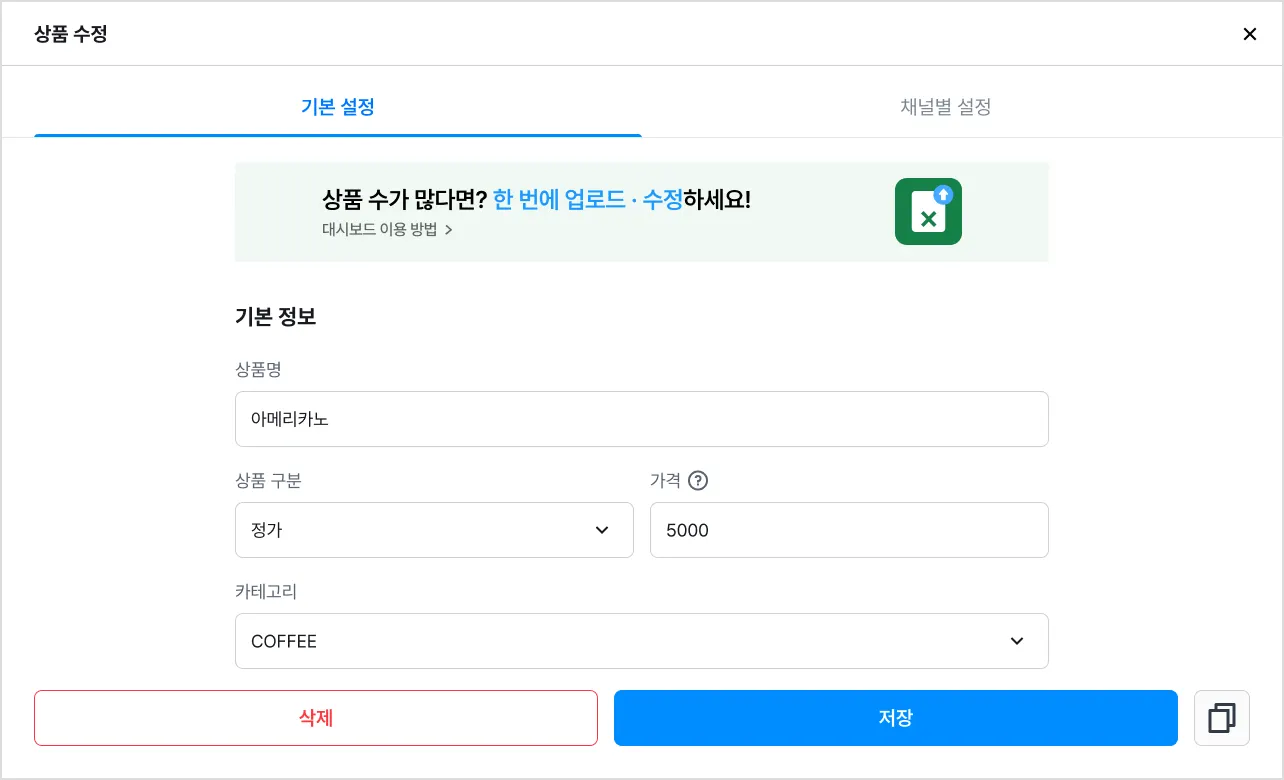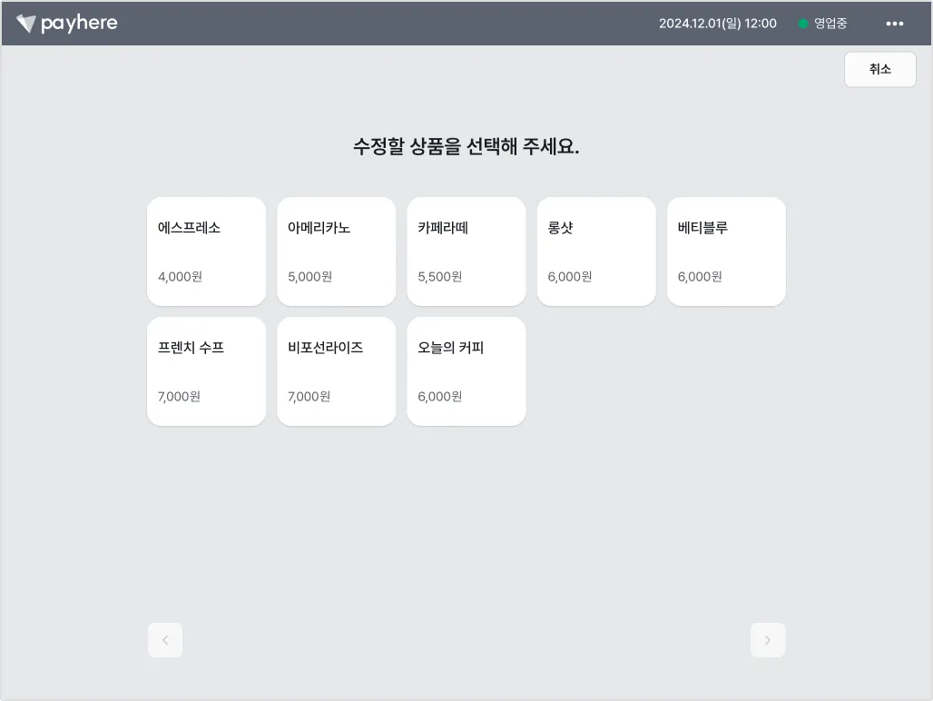 상품을 꾹 누르거나 마우스 우클릭을 하면 바로 상품 수정 창이 나타나요.