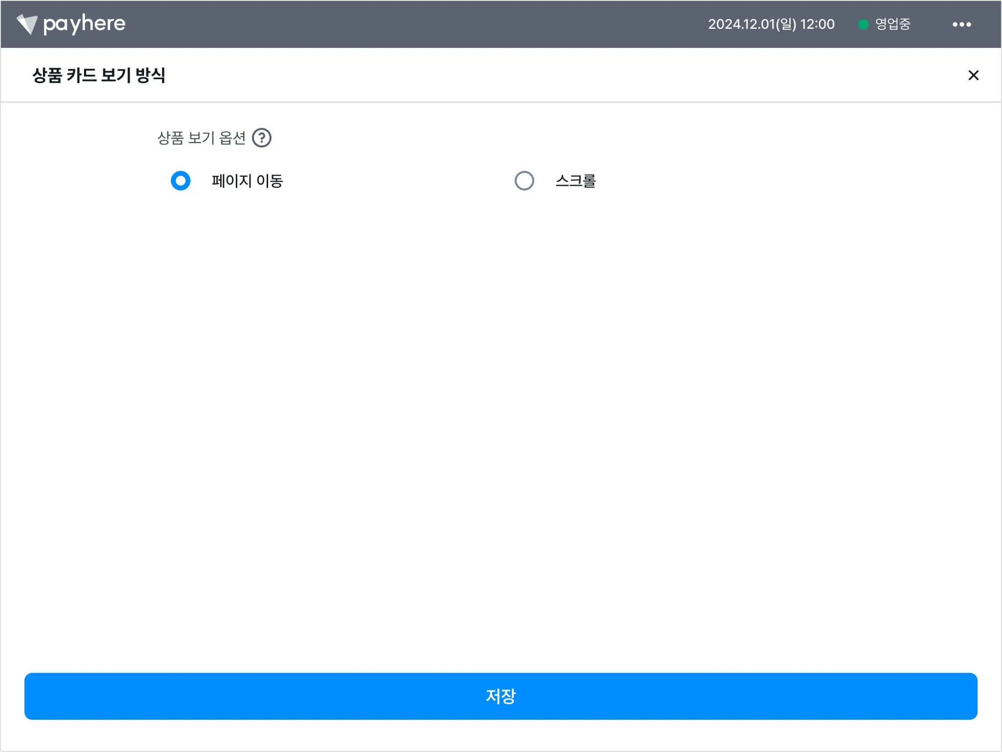 한 페이지에 상품이 가득 찼을 때 다음 페이지로 넘어가는 방식을 선택할 수 있어요.