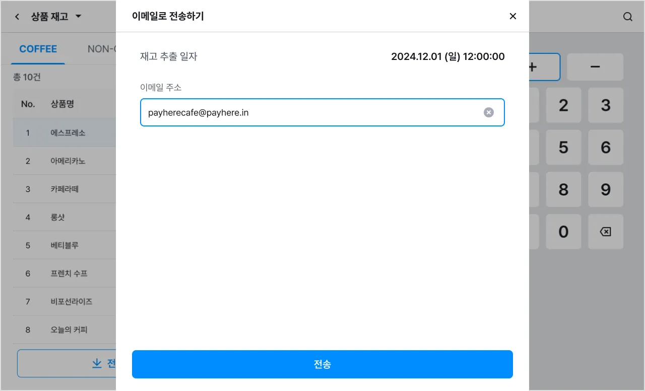 4) 이메일 주소를 입력한 후 [전송]을 눌러주세요.