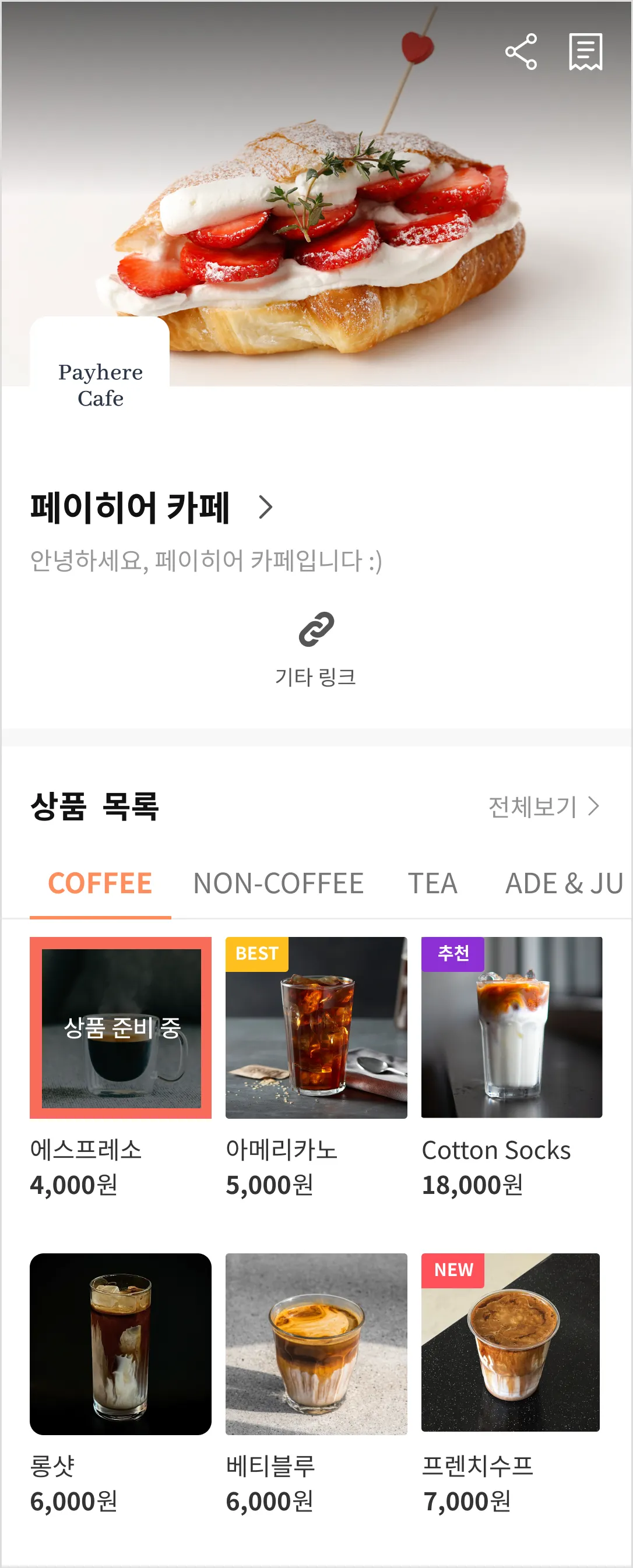페이히어 셀러 및 터미널 일반 모드는 관리자 화면이기 때문에 품절 설정 여부와 관계없이 품절 표시가 적용되지 않아요.