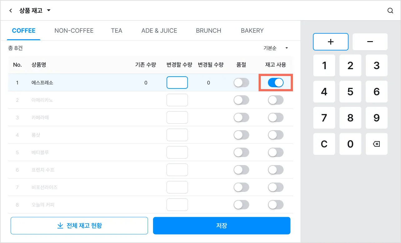 2. 재고 수량 입력하기