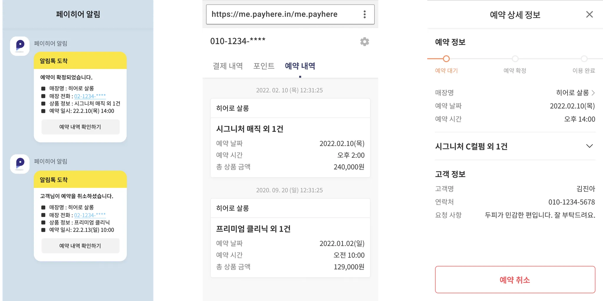 3) 매장에서 예약을 수락하거나 취소하면 카카오 알림톡이 전송됩니다.