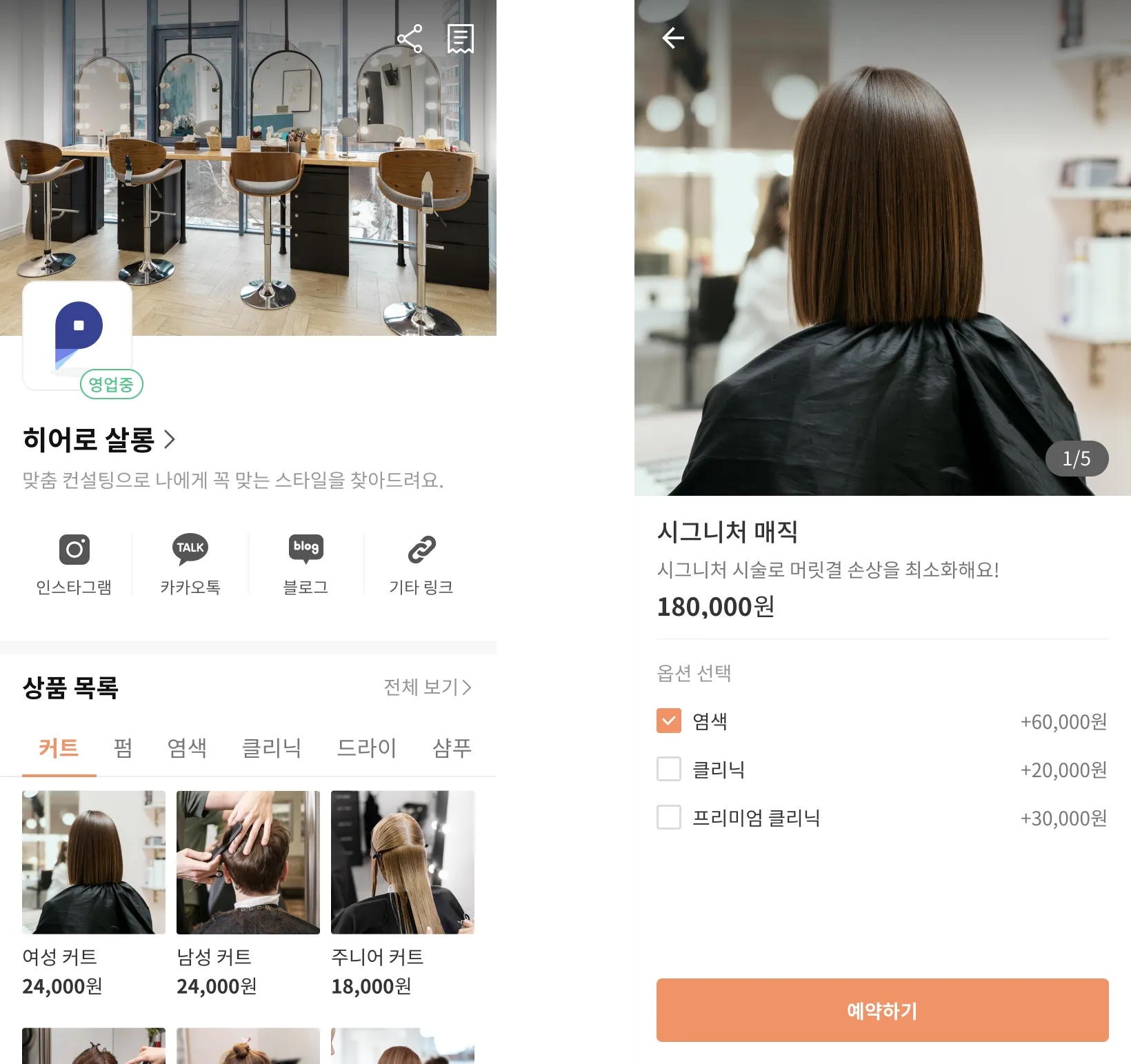 1) 매장 온라인 스토어에 접속하여 원하는 상품을 선택하고 [예약하기] 버튼을 눌러주세요.