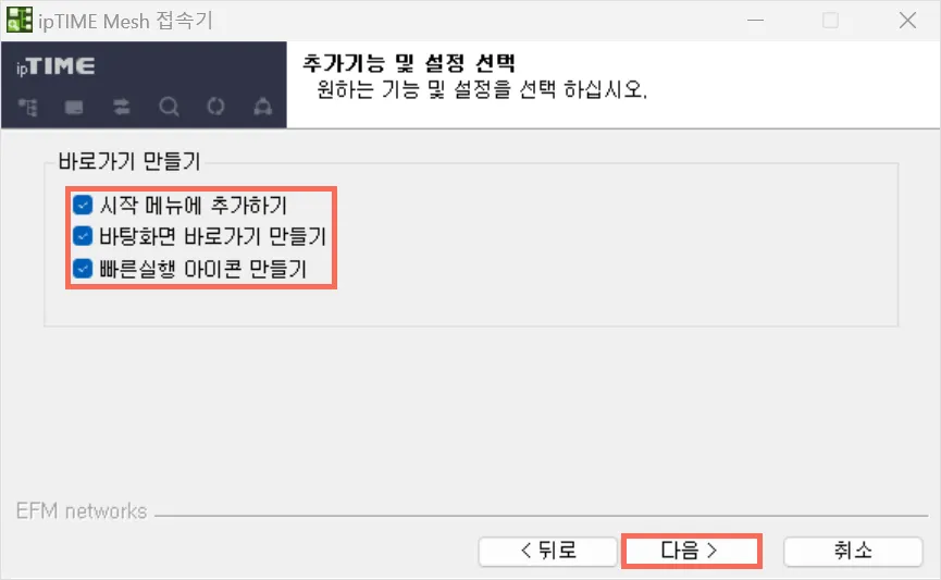 바로 가기 만들기는 원하는 항목만 체크해 주셔도 무방합니다.