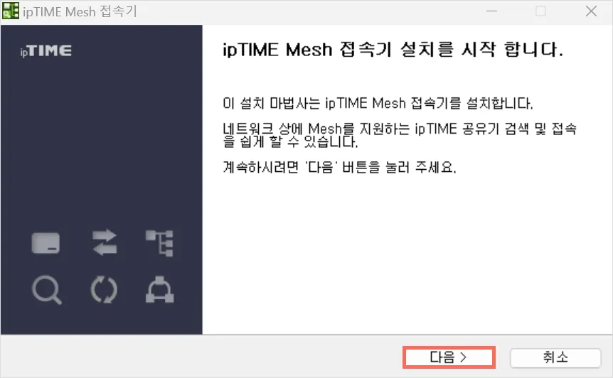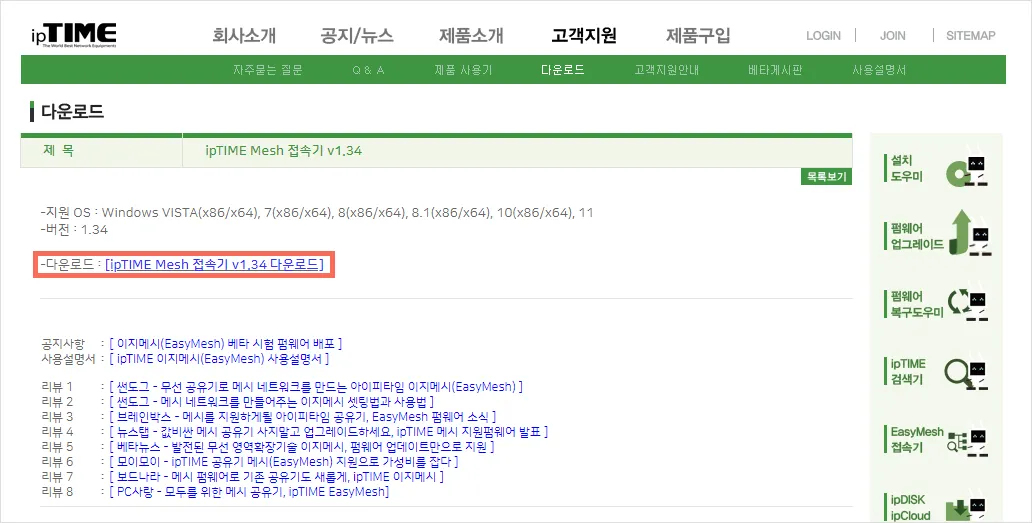 1) 아래 링크를 클릭하여 ‘ipTIME Mesh 접속기 v1.34’를 다운로드해 주세요.