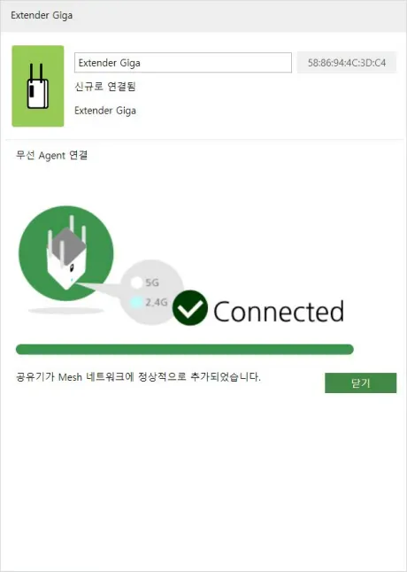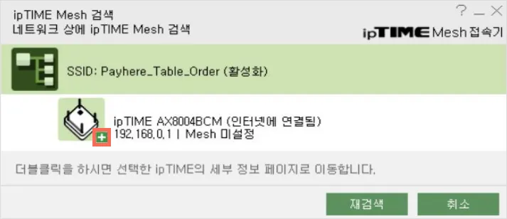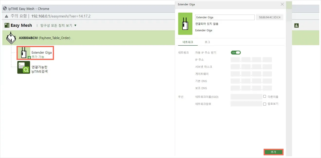 6) ip Time Mesh 접속기로 돌아가 ‘Extender Giga’를 선택한 후 [추가]를 눌러주세요.