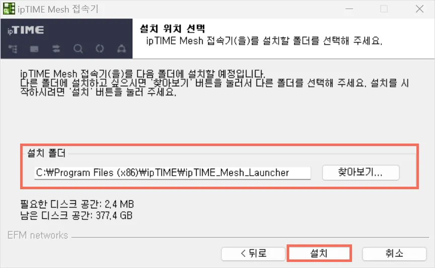 4) 설치 폴더를 확인한 후 [설치]를 누르면 완료됩니다.