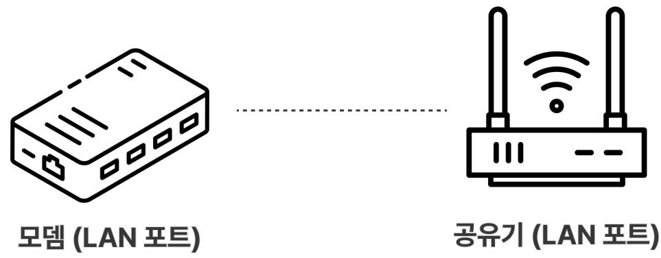 ① 모뎀과 공유기를 유선으로 연결합니다.